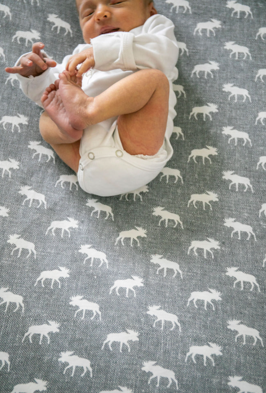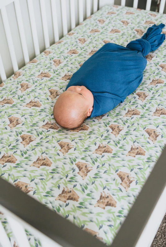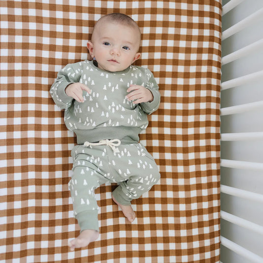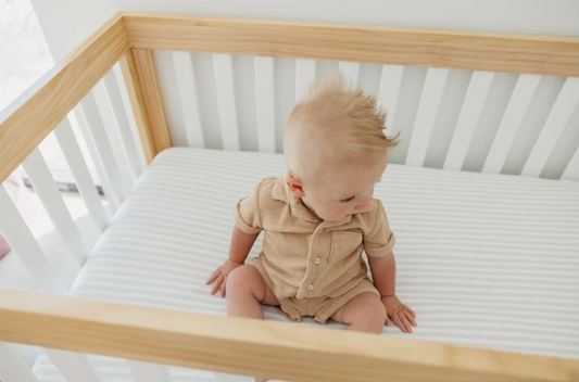Sold outTaupe Stripe Stretchy Crib Sheet
