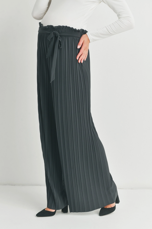 Dark Grey Pleated Wide Leg Maternity Pants