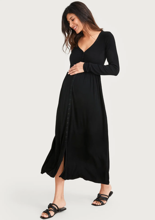 Black/Sand Striped Maternity & Nursing Sweater Dress