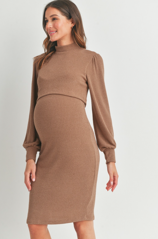 Camel 2-In-1 Nursing & Maternity Knit Midi Dress