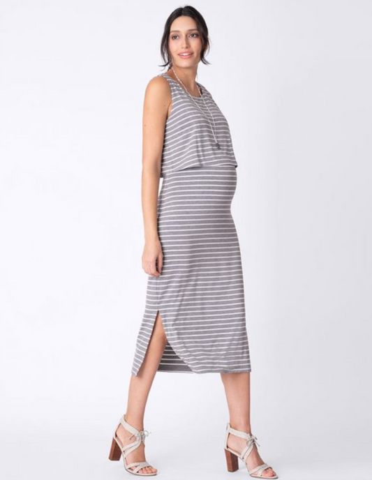 Grey Stripe Midi Maternity & Nursing Midi Dress