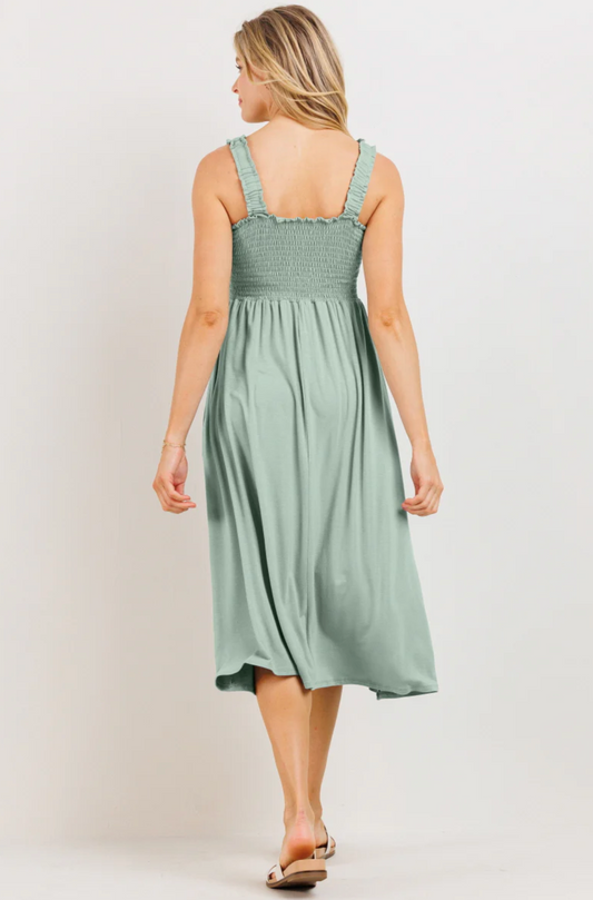 Gwen Pistachio Ribbed Bamboo Maternity Midi Dress
