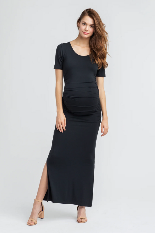 Gwen Black Ribbed Bamboo Maternity Midi Dress