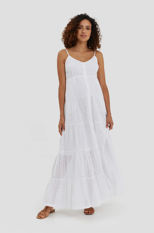 White/Navy Stripe Maternity & Nursing Flare Dress