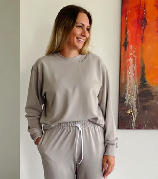 Taupe Ribbed Drawstring Long Sleeve Maternity Top