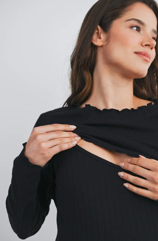 Black Lettuce Edge Rib Knit Maternity & Nursing Top