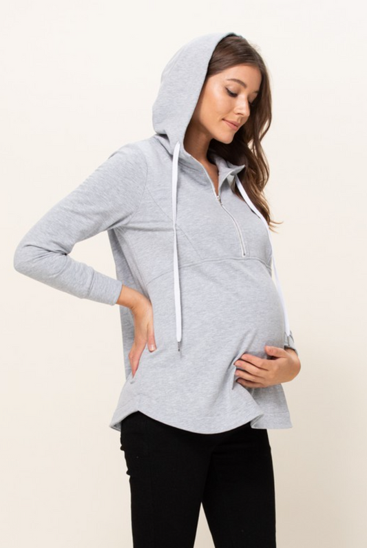 Heather Grey Maternity & Nursing Half Zip Hoodie